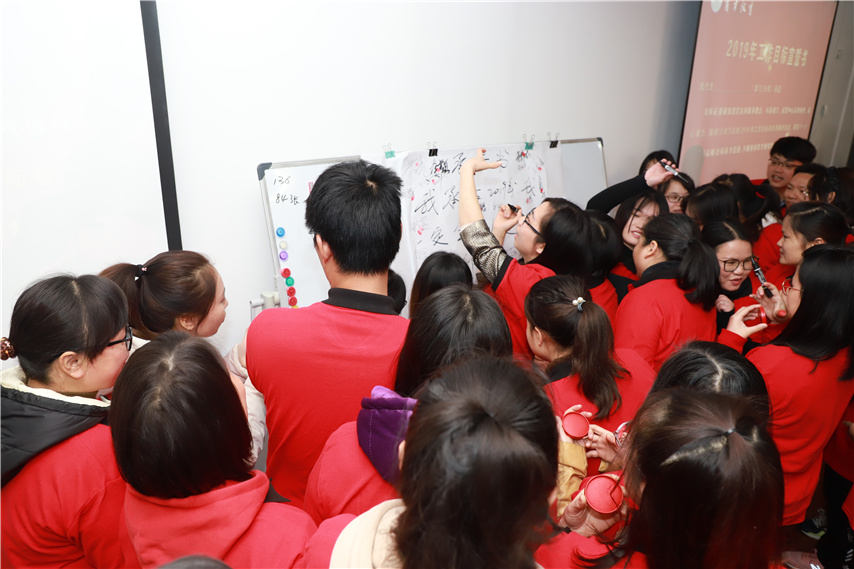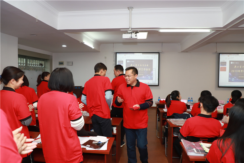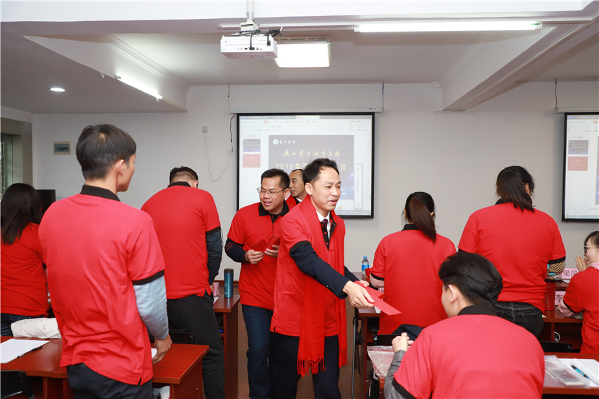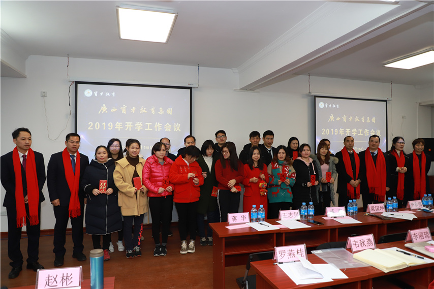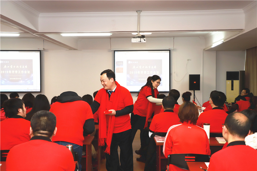 會前,領導班子給全體教職工派發(fā)了開年紅包,并致以新春的美好祝福。全體教職工換上整齊的“紅裝”,立志要在2019年讓集團發(fā)展更紅火。