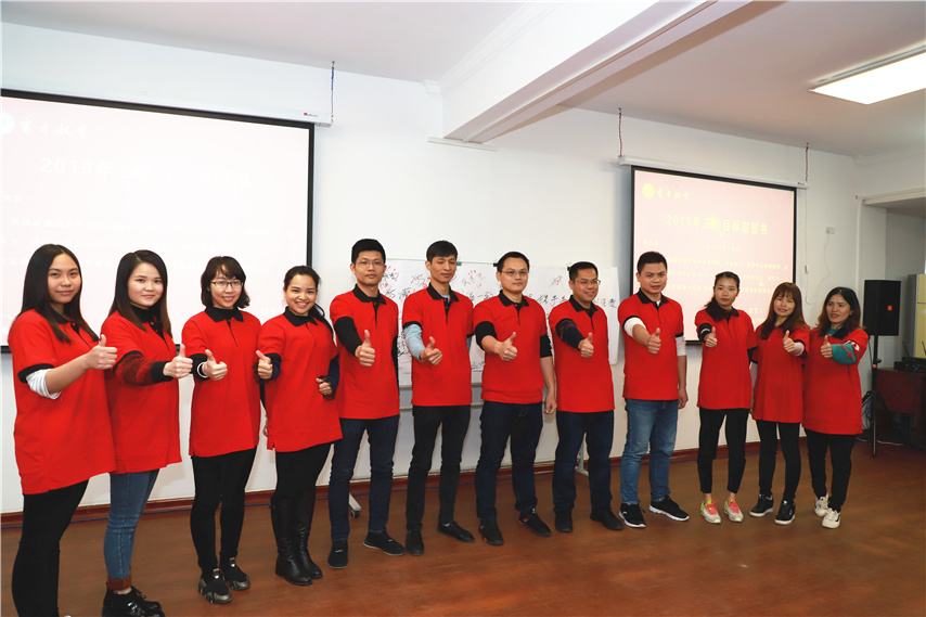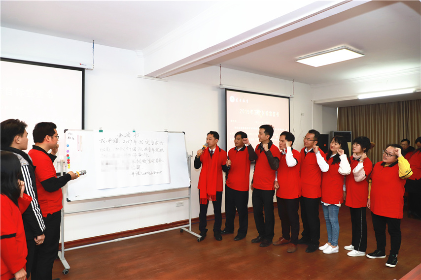 各部門、運營中心負責人代表團隊在會上簽訂了2019年工作目標承諾書,并與團隊成員一起宣誓,承諾完成2019年集團下達給部門和運營中心的工作目標和任務,否則將自愿接受相應的懲罰。