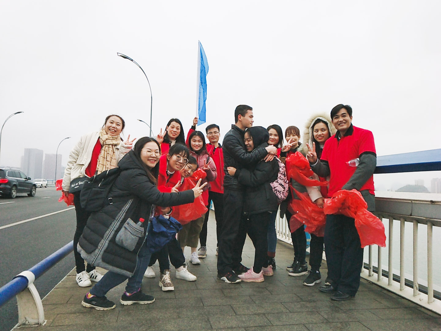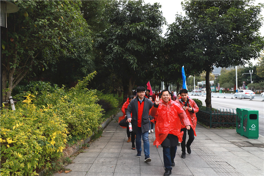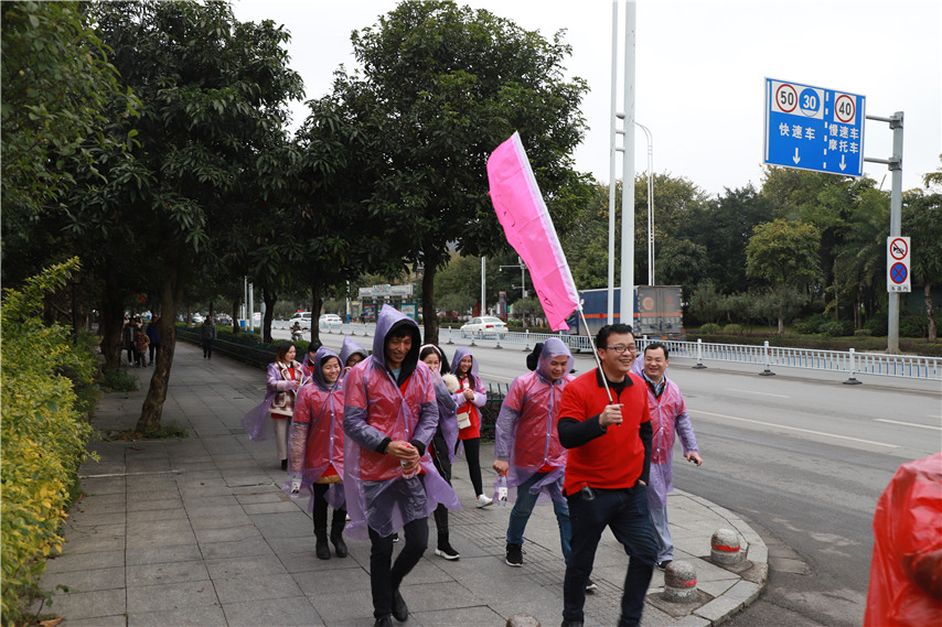 活動(dòng)包括歡樂熱身操、團(tuán)隊(duì)造型展示、團(tuán)隊(duì)徒步闖關(guān)等環(huán)節(jié),其中前兩個(gè)環(huán)節(jié)在工業(yè)博物館西面場地進(jìn)行,徒步線路為:工業(yè)博物館-東堤路-壺東大橋-濱江東路-文昌大橋-工業(yè)博物館,行程約5公里?;顒?dòng)分為9支隊(duì)伍進(jìn)行,每隊(duì)設(shè)置一名監(jiān)督員,各支隊(duì)伍要依次完成打開繩結(jié)、穿越A4、乾坤大挪移三項(xiàng)固定團(tuán)隊(duì)任務(wù),同時(shí)完成跳離地面合影、擺心形、情侶合影三項(xiàng)隨機(jī)任務(wù),經(jīng)歷熔煉團(tuán)隊(duì)和闖關(guān)大行動(dòng)“艱難而開心”的歷程,凱旋歸來。活動(dòng)還設(shè)置了“環(huán)保公益”加分項(xiàng),鼓勵(lì)每支隊(duì)伍在徒步過程中撿拾垃圾,為城市衛(wèi)生和環(huán)境建設(shè)出力,也讓團(tuán)建活動(dòng)變得更有意義。