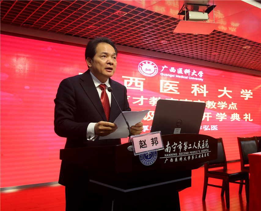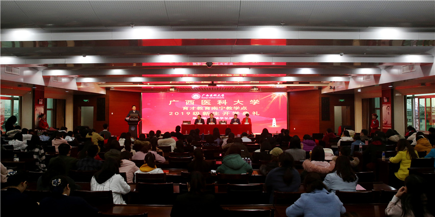 3月9日上午,廣西醫(yī)科大學(xué)育才教育南寧教學(xué)點(diǎn)2019級(jí)新生開學(xué)典禮在廣西醫(yī)科大學(xué)第三附屬醫(yī)院(南寧市第二人民醫(yī)院)報(bào)告廳隆重舉行。廣西醫(yī)科大學(xué)繼續(xù)教育學(xué)院院長(zhǎng)趙邦、廣西醫(yī)科大學(xué)第三附屬醫(yī)院院長(zhǎng)李建民、繼續(xù)教育學(xué)院辦公室主任、育才輔導(dǎo)站站長(zhǎng)蔣華、副站長(zhǎng)蔣仕榮、輔導(dǎo)站管理老師和200余名新生代表參加了開學(xué)典禮。典禮由南寧市第二人民醫(yī)院護(hù)理部主任汪莉主持。