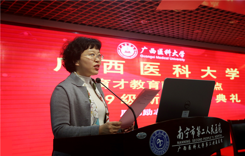 南寧市第二人民醫(yī)院護(hù)理部主任汪莉主持開學(xué)典禮