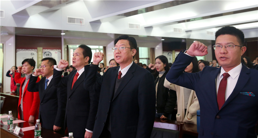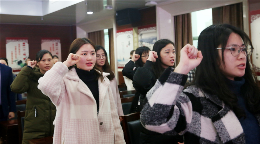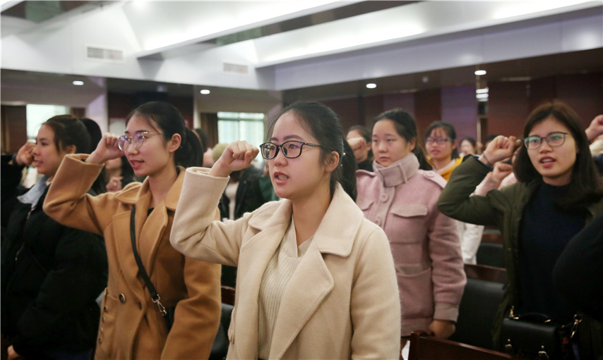 護(hù)理部主任汪莉領(lǐng)誓,全體新生宣讀醫(yī)學(xué)生誓詞。