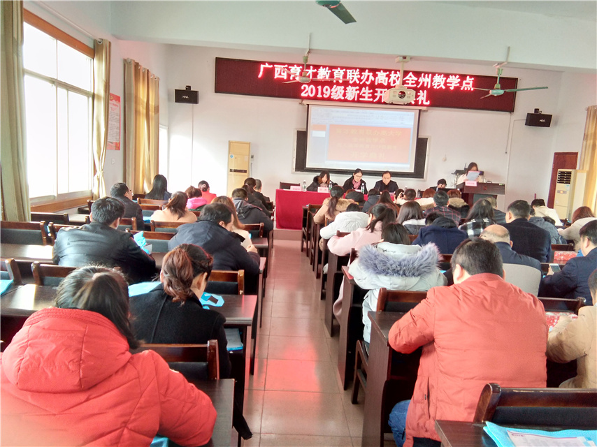 3月10日上午,育才聯(lián)辦高校全州教學(xué)點(diǎn)2019級(jí)成人高等教育新生開學(xué)典禮在全州縣委黨校教學(xué)樓3樓順利舉行,集團(tuán)總校副校長李彩梅、桂林運(yùn)營中心負(fù)責(zé)人、教學(xué)管理老師胡靜、肖蘭、李彩玲以及近100名新生代表參加了典禮,典禮由肖蘭老師主持。