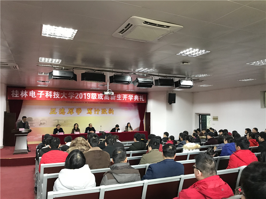3月9日上午,桂林電子科技大學(xué)校本部2019級成人高等教育新生開學(xué)典禮在金雞嶺校區(qū)正平科技館順利召開,繼續(xù)教育學(xué)院院長高文強、副院長周建豐、院辦主任程華、科長李麗芳、育才桂林運營中心負責(zé)人等領(lǐng)導(dǎo)老師和100余名學(xué)員代表參加了典禮。典禮由副院長周建豐主持。