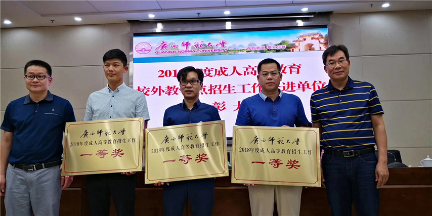 因工作出色,育才函授站榮獲廣西師范大學2018年度成人高等教育招生工作“一等獎”。