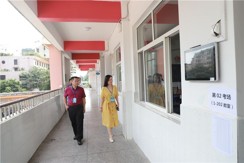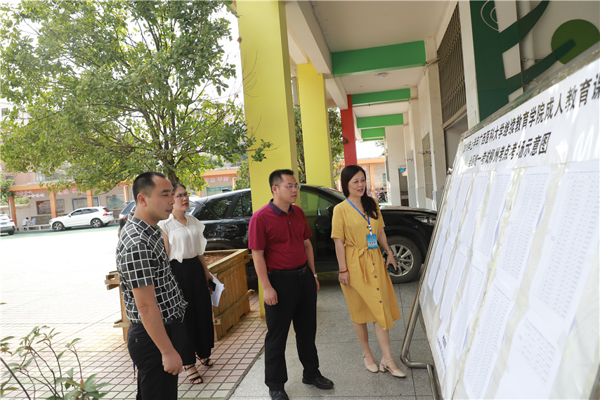 ▲廣西醫(yī)科大學(xué)繼續(xù)教育學(xué)院劉慶委副院長(zhǎng)(右一)到柳州考點(diǎn)巡考