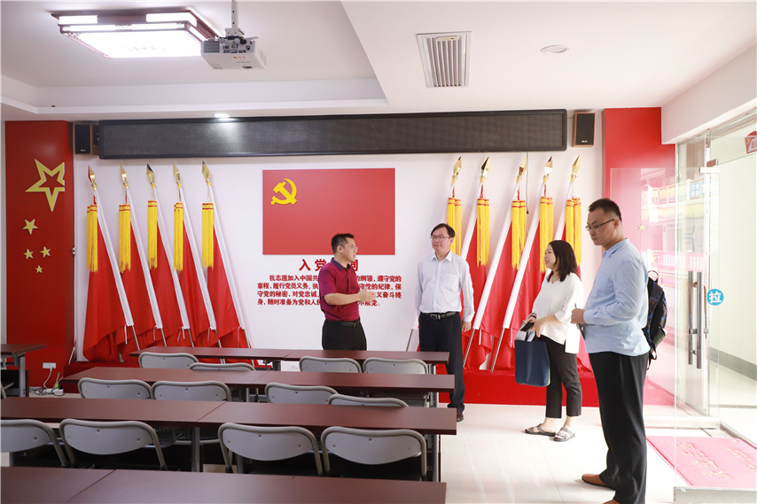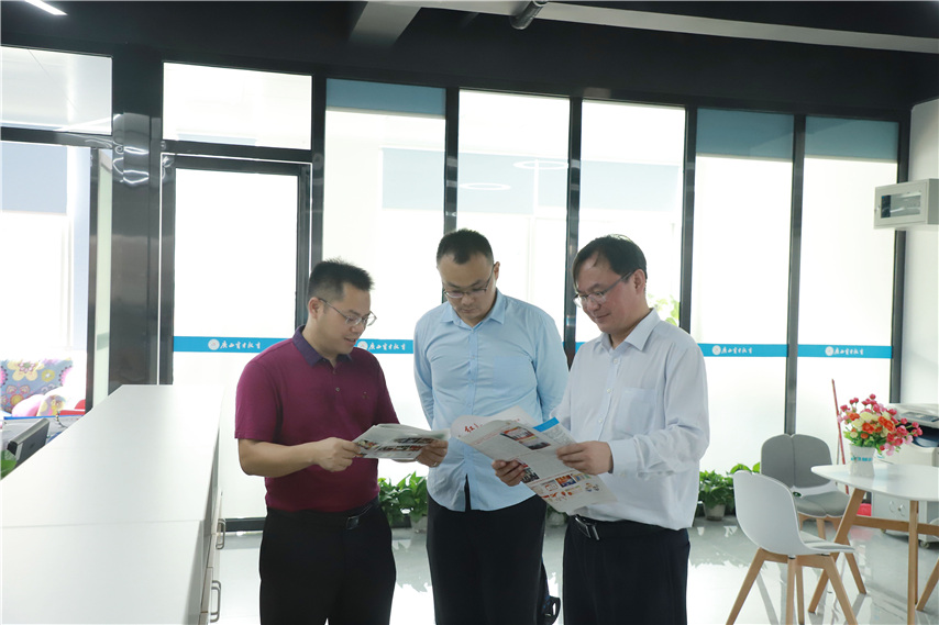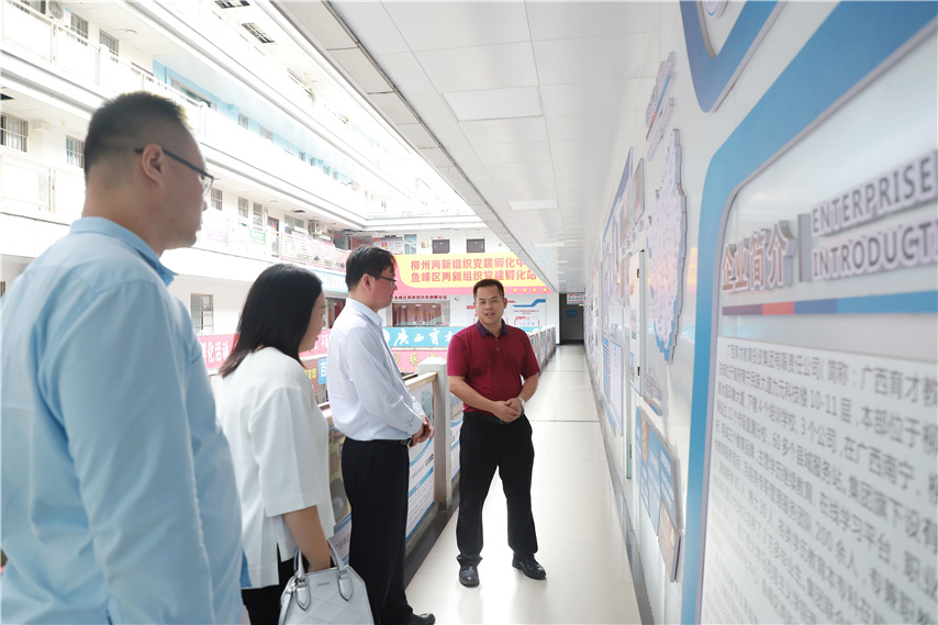 ▲王長明先生(右一)參觀育才柳州本部辦公環(huán)境