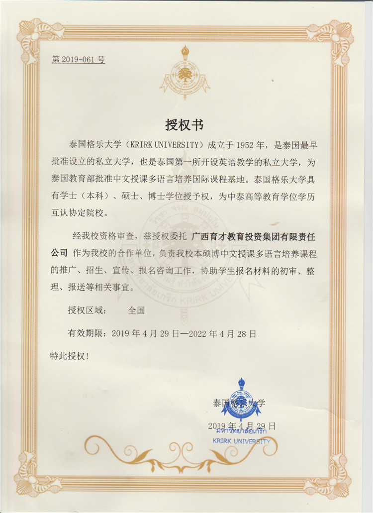 泰國格樂大學(xué)中國廣西育才大學(xué)堂等著您!