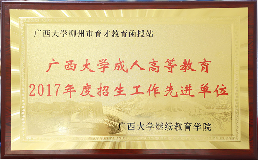 ▲函授站連續(xù)四年榮獲廣西大學招生工作先進單位獎牌