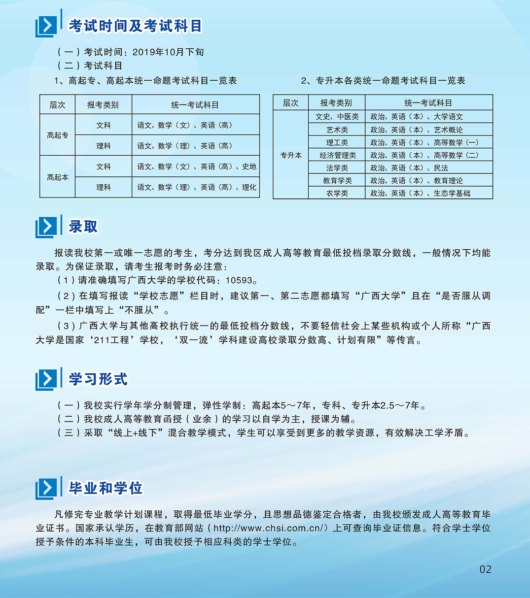 據(jù)悉,育才教育函授站是經(jīng)教育廳批準備案的廣西大學校外函授站,連續(xù)四年榮獲了廣西大學招生工作先進單位。2019年成人函授本、專科報名火熱進行中,歡迎廣大有志之士報讀廣西大學。