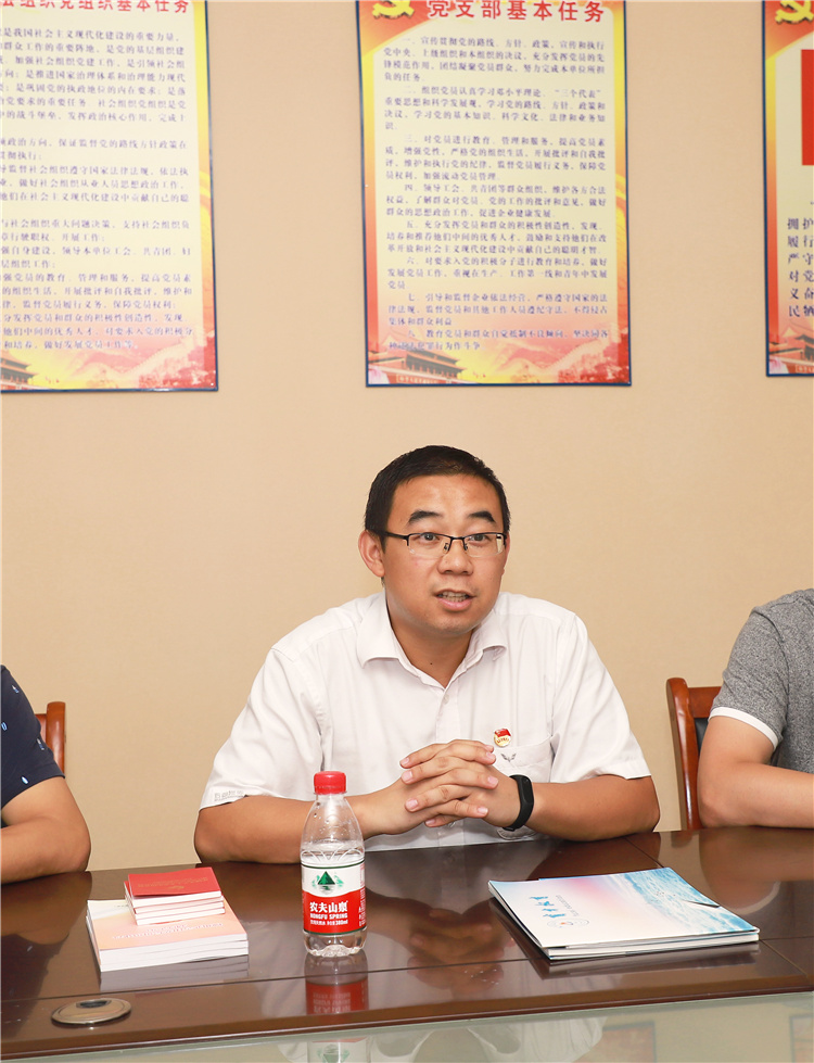 ▲團(tuán)市委副書(shū)記張揚(yáng)(右二)翻閱育才報(bào)刊