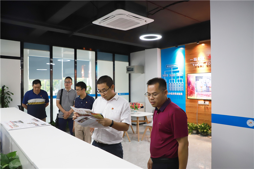 ▲團(tuán)市委副書(shū)記張揚(yáng)(右二)參觀黨建孵化站建設(shè)
