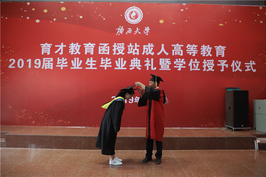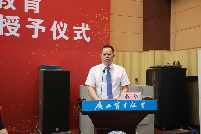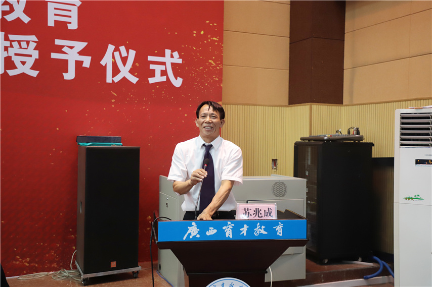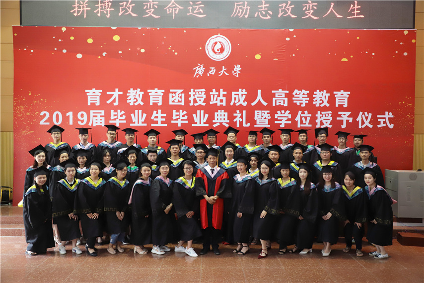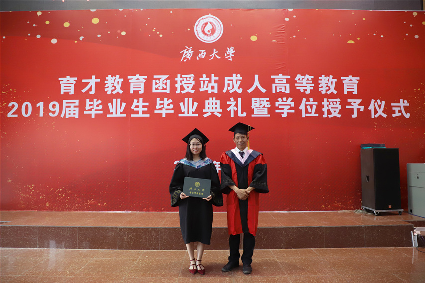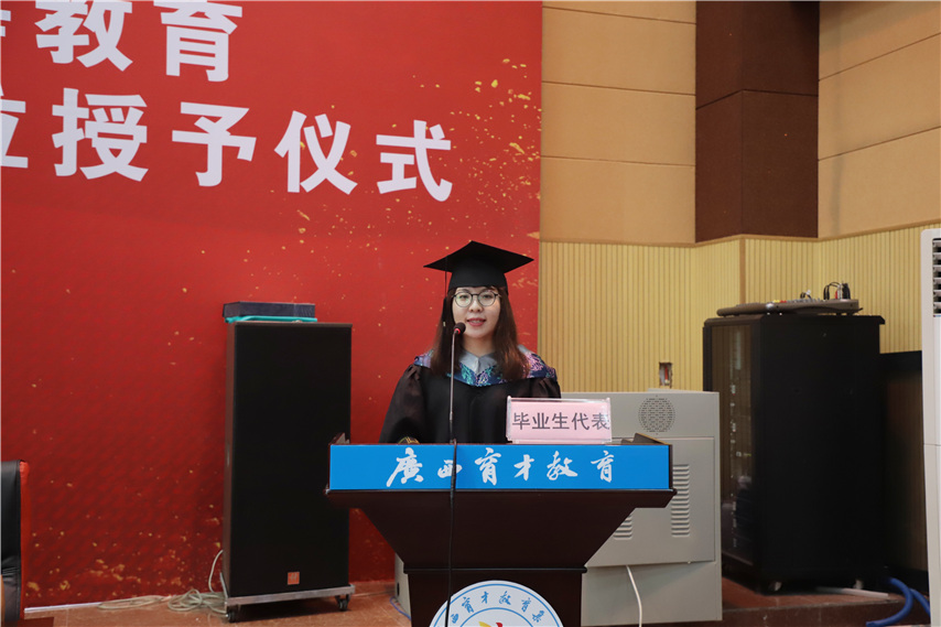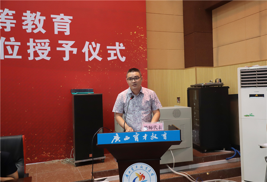 函授站站長(zhǎng)蔣華老師向2019屆畢業(yè)生表示誠(chéng)摯的祝賀,對(duì)蘇兆成院長(zhǎng)的到來(lái)表示熱烈歡迎,向廣西大學(xué)送教上門(mén)表示衷心的感謝,他介紹了本屆畢業(yè)生的情況,希望畢業(yè)生學(xué)會(huì)感恩,不斷學(xué)習(xí),報(bào)效社會(huì),同時(shí)關(guān)心母校的發(fā)展,最后提醒畢業(yè)生妥善保管畢業(yè)證和畢業(yè)生檔案。