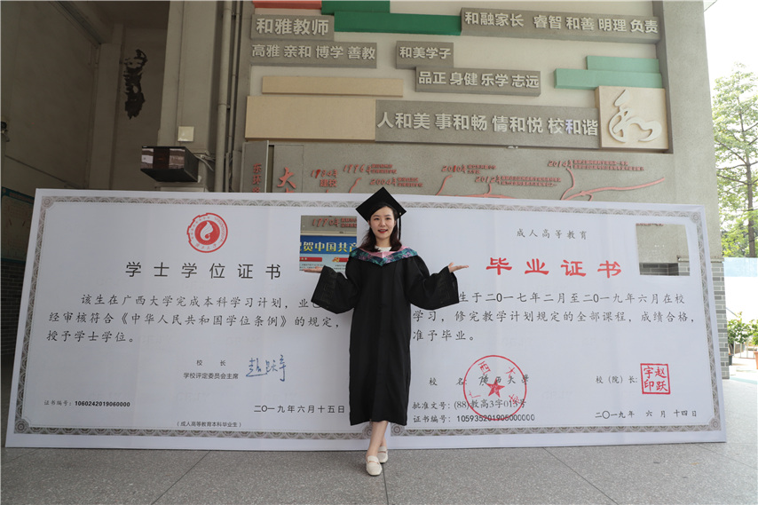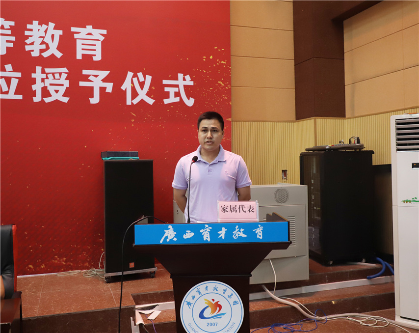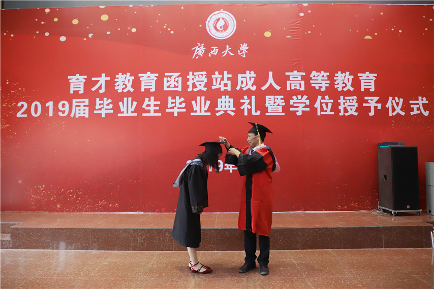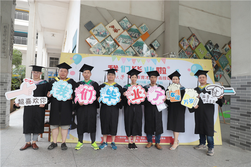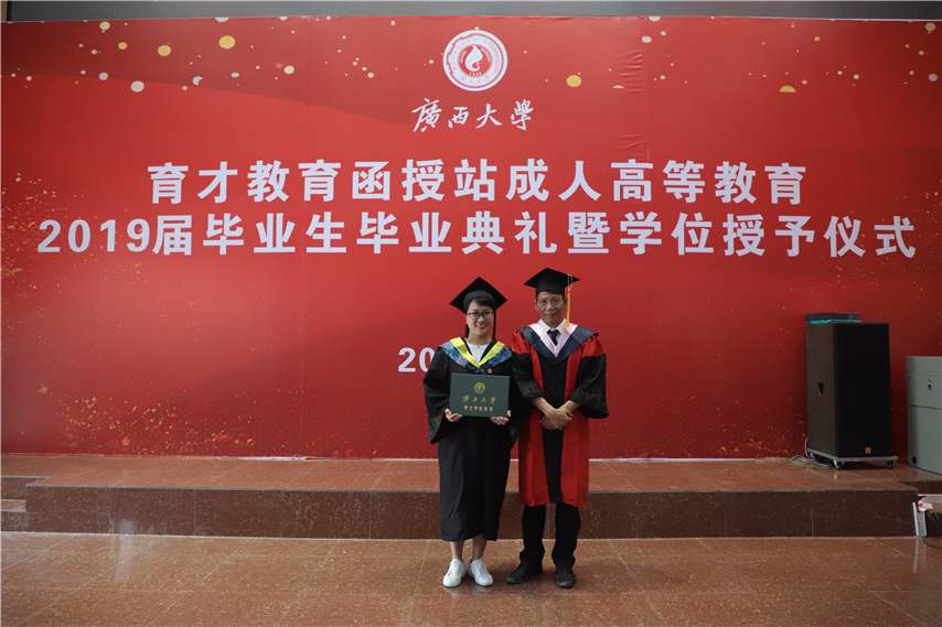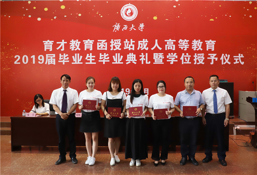函授站站長(zhǎng)蔣華老師向2019屆畢業(yè)生表示誠(chéng)摯的祝賀,對(duì)蘇兆成院長(zhǎng)的到來(lái)表示熱烈歡迎,向廣西大學(xué)送教上門(mén)表示衷心的感謝,他介紹了本屆畢業(yè)生的情況,希望畢業(yè)生學(xué)會(huì)感恩,不斷學(xué)習(xí),報(bào)效社會(huì),同時(shí)關(guān)心母校的發(fā)展,最后提醒畢業(yè)生妥善保管畢業(yè)證和畢業(yè)生檔案。