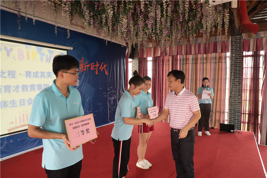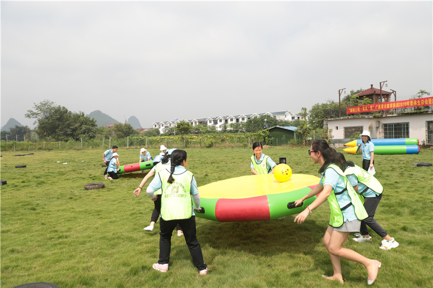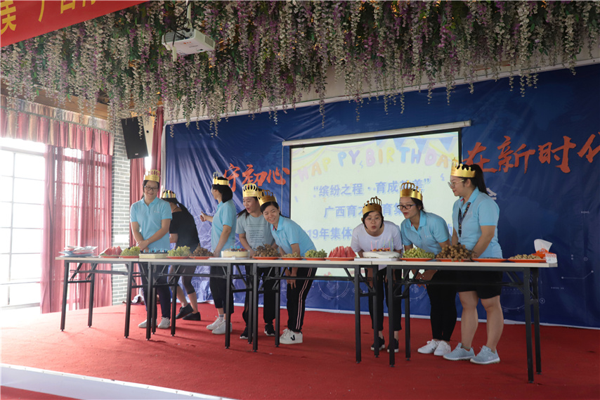 8月12日,“繽紛之程·育成其美”廣西育才教育集團(tuán)2019年集體生日會(huì)暨團(tuán)建活動(dòng)在柳州綠瀾·太陽(yáng)河生態(tài)園歡樂舉行。集團(tuán)聯(lián)合黨委紀(jì)檢委員、副總經(jīng)理李彩梅、集團(tuán)工會(huì)主席、聯(lián)合黨委宣傳委員、副總經(jīng)理王麗以及70余名教職員工參加了活動(dòng)。本次活動(dòng)特別邀請(qǐng)魚峰區(qū)總工會(huì)副主席伍良同志、魚峰區(qū)兩新組織黨工委黨建組織員楊培參與指導(dǎo)育才黨建引領(lǐng)工會(huì)的建設(shè)?;顒?dòng)由集團(tuán)工會(huì)主辦。