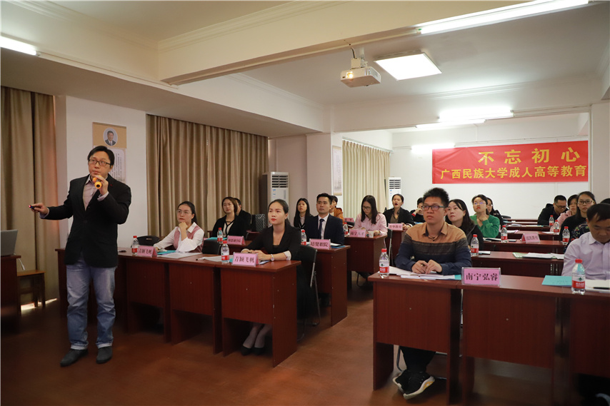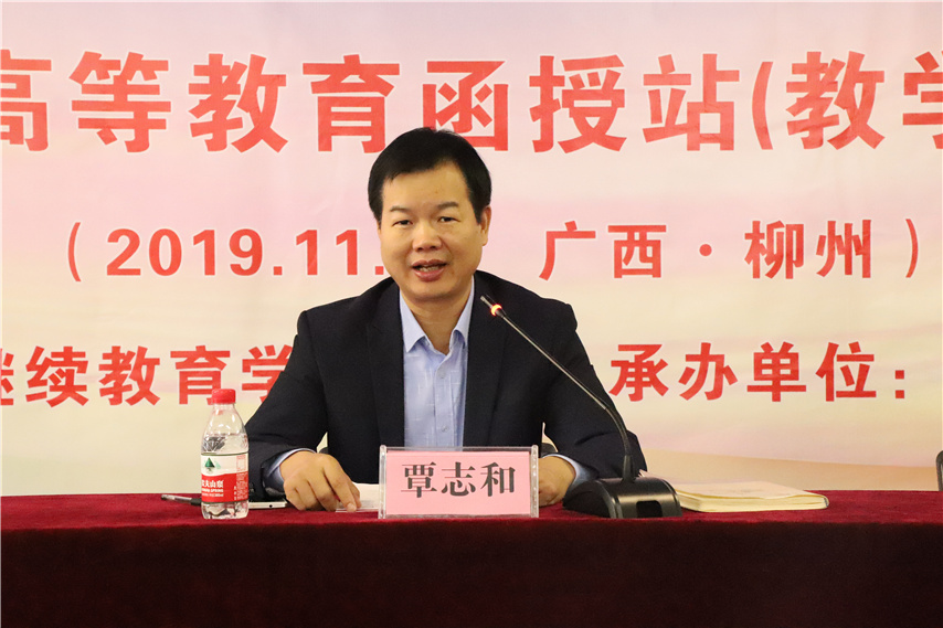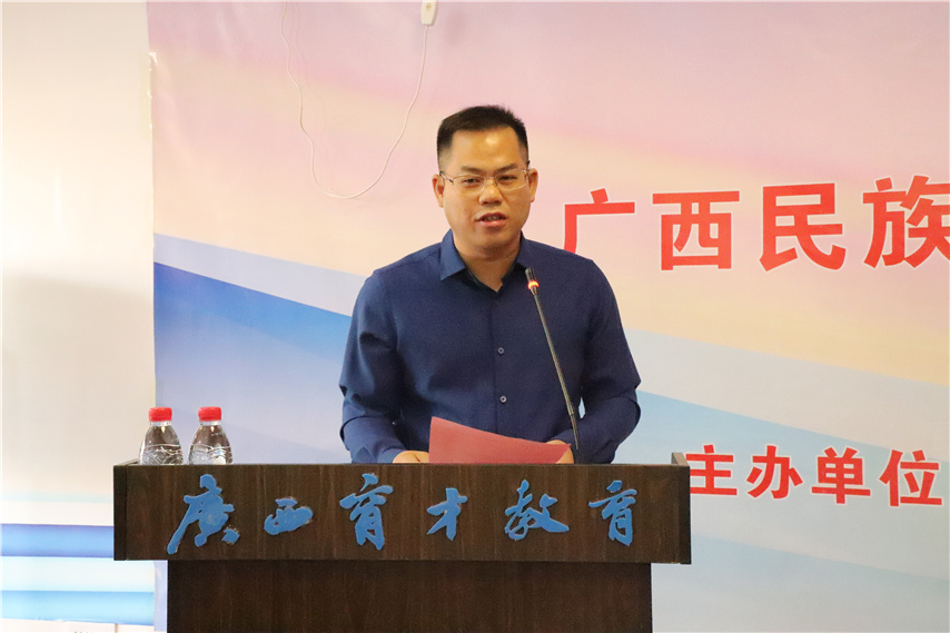 ▲廣西民族大學(xué)繼續(xù)教育學(xué)院黨總支書記、院長(zhǎng)覃志和講話
