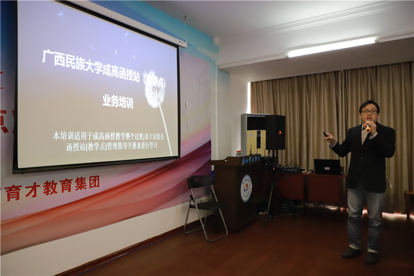▲學(xué)歷教育科科長(zhǎng)陳家寧為與會(huì)代表作教學(xué)教務(wù)管理業(yè)務(wù)培訓(xùn)