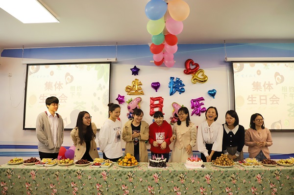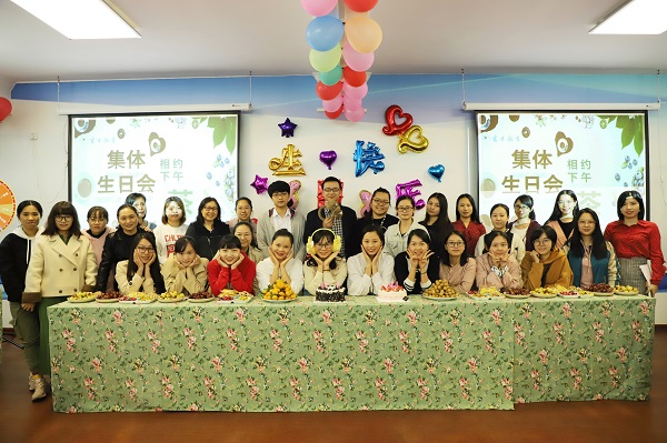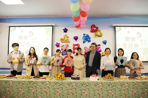 為體現(xiàn)集團對教職工的關(guān)懷,增強教職工的向心力與凝聚力,11月8日下午,在集團工會的精心布置下,“感恩有你·相約育才”集團2019年集體生日會暨下午茶活動在水晶印象409室歡樂舉行,集團聯(lián)合黨委宣傳委員、工會主席、副總經(jīng)理王麗以及30余名教職工參加了活動。