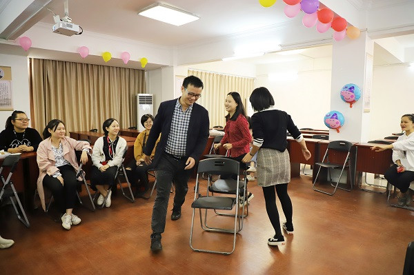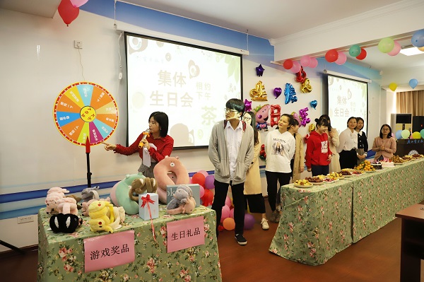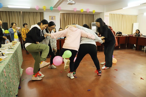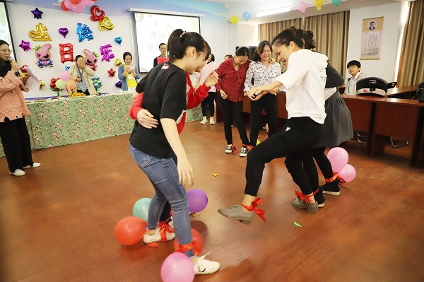 活動以集體生日會和趣味游戲的形式進行,游戲活動包括兩個環(huán)節(jié):搶凳子和兩人綁腳踩氣球。趣味游戲尤其注重教職工的參與以及團隊協(xié)作,也考驗個人的積極性與靈活性。在盡情游戲之前,參會的所有教職工一起為10位壽星慶生,無比歡樂!