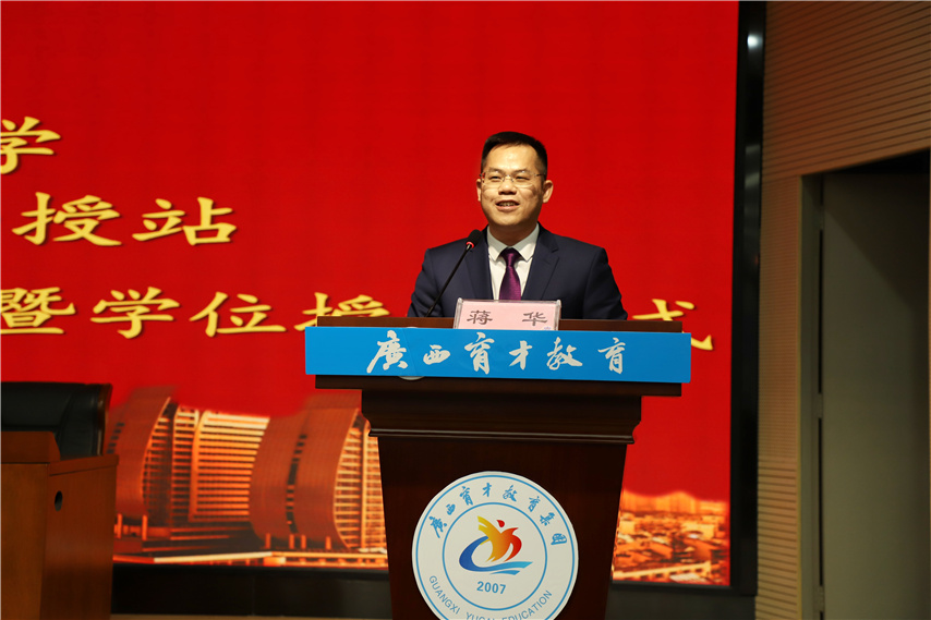 函授站站長蔣華向2020屆畢業(yè)生表示衷心的祝賀,他介紹了本屆畢業(yè)生的情況,并對廣西醫(yī)科大學(xué)送教上門、柳州市人民醫(yī)院提供教學(xué)場地以及函授站老師的辛苦付出表示感謝;希望同學(xué)們能夠繼續(xù)發(fā)揚克服困難完成學(xué)業(yè)的拼搏精神,要懷著一顆感恩的心,關(guān)心母校和函授站的發(fā)展,同時在自己的工作崗位上作出貢獻,為母校增光,為自己創(chuàng)造更輝煌的人生,報效社會;希望大家樹立終身學(xué)習(xí)的意識,已經(jīng)取得醫(yī)學(xué)類??茖W(xué)歷的畢業(yè)生門可以繼續(xù)報讀母校的本科進行學(xué)習(xí),對此,函授站站將給予大力的支持,更好地做好服務(wù)。