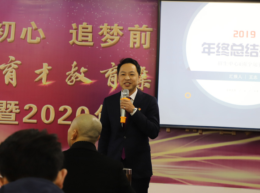 ▲集團聯合黨委副書記、副總經理、副校長王志作招生中心和南寧運營中心述職報告