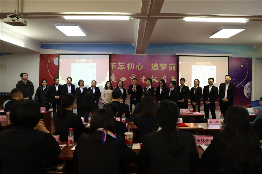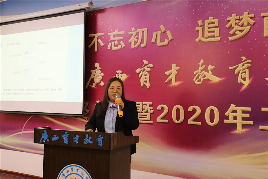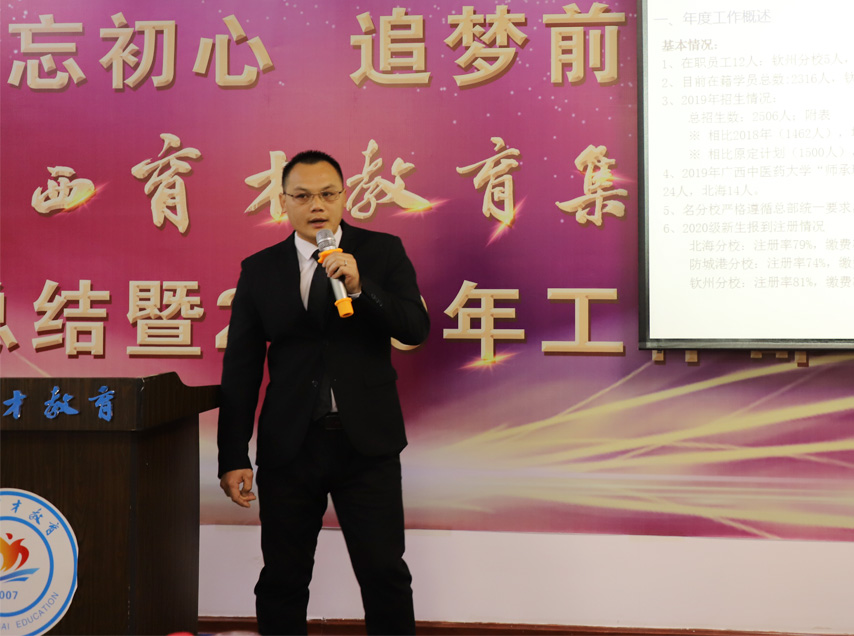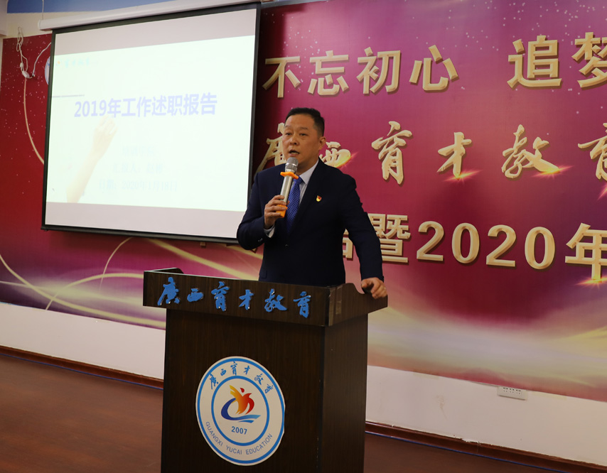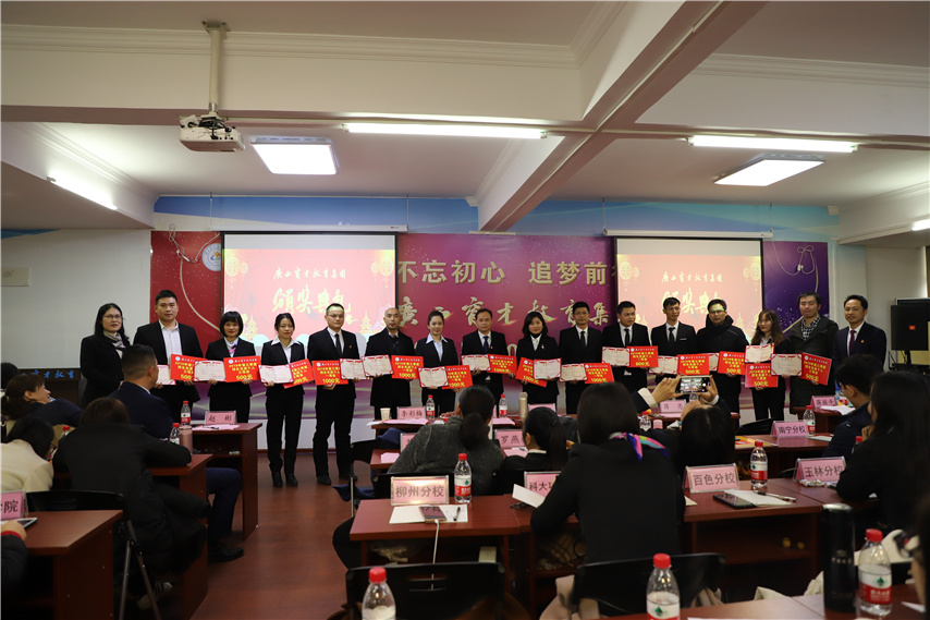 1月18日,集團2019年年終工作總結暨2020年工作部署大會在柳州本部隆重舉行。集團聯合黨委書記、董事長、總經理、培訓學院院長蔣華、集團總校校長梁國坤、集團聯合黨委副書記、副總經理、副校長王志、集團聯合黨委紀檢委員、副總經理、副校長李彩梅、集團聯合黨委委員、副總經理、副校長蔣亮、集團聯合黨委宣傳委員、副總經理、副校長王麗、集團聯合黨委委員、培訓學院副院長趙彬等黨政領導班子成員及全體教職工參加了大會。