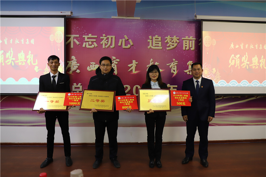 會議第二階段,對集團第二季度、第三季度招生先進集體、招生先進個人進行了表彰,并頒發(fā)榮譽證書、獎金以示鼓勵。