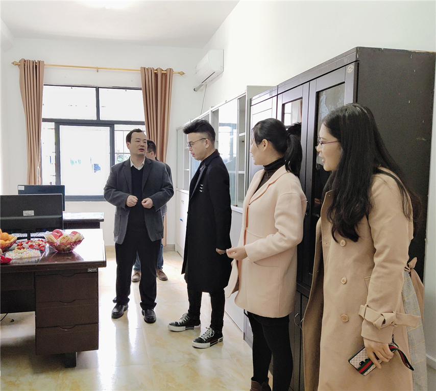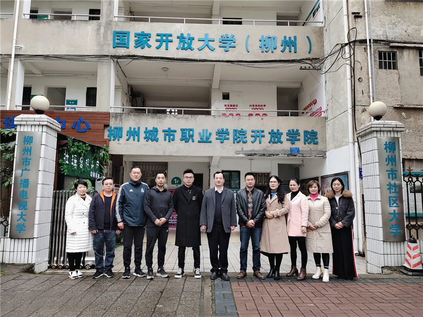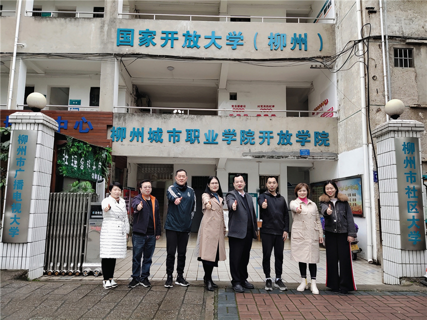 ▲柳州城市職業(yè)學(xué)院開放學(xué)院支部書記、院長(zhǎng)覃承賢(右三)蒞臨辦公室指導(dǎo)工作