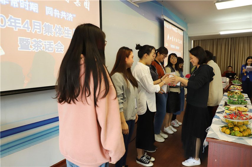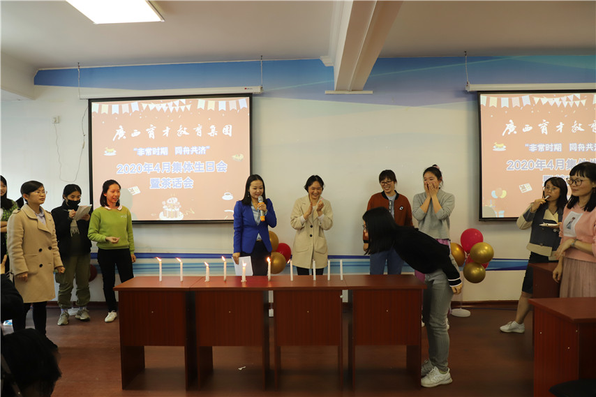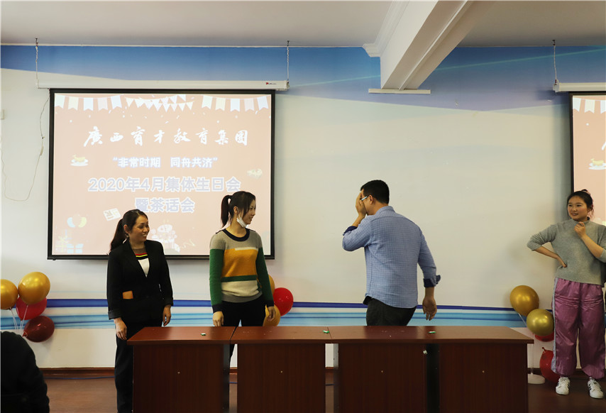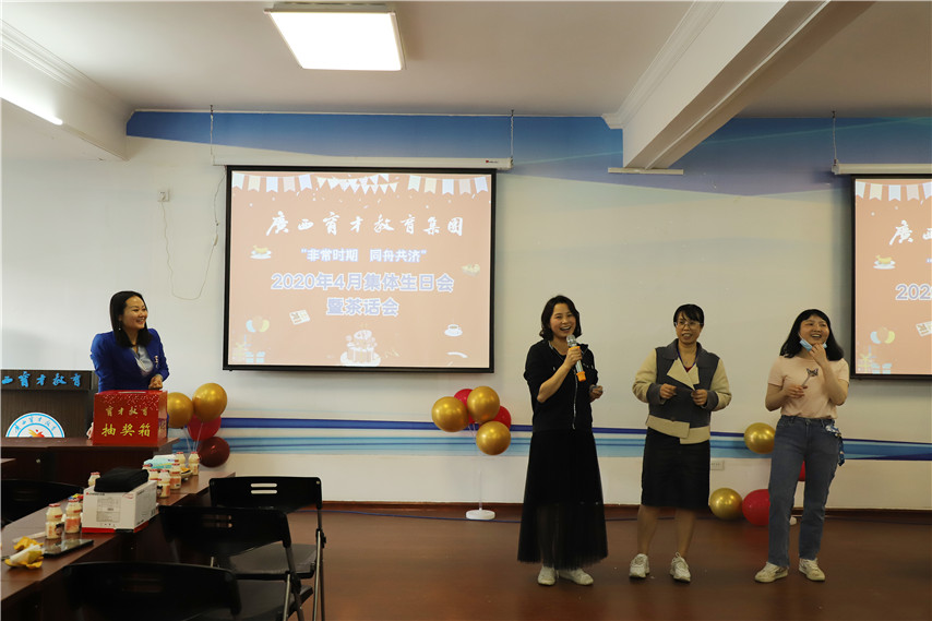 在新冠肆虐的非常時期,隨著疫情的逐漸緩解,4月27日下午,集團(tuán)柳州本部舉辦“非常時期·同舟共濟(jì)”4月集體生日會暨茶話會活動,集團(tuán)聯(lián)合黨委書記、董事長蔣華,總校校長梁國坤,黨委紀(jì)檢委員、副總經(jīng)理、副校長李彩梅,黨委宣傳委員、工會主席、副總經(jīng)理、副校長王麗,黨委委員、副總經(jīng)理、副校長蔣亮,黨委委員、培訓(xùn)學(xué)院院長趙彬以及60余名教職工參加了活動。