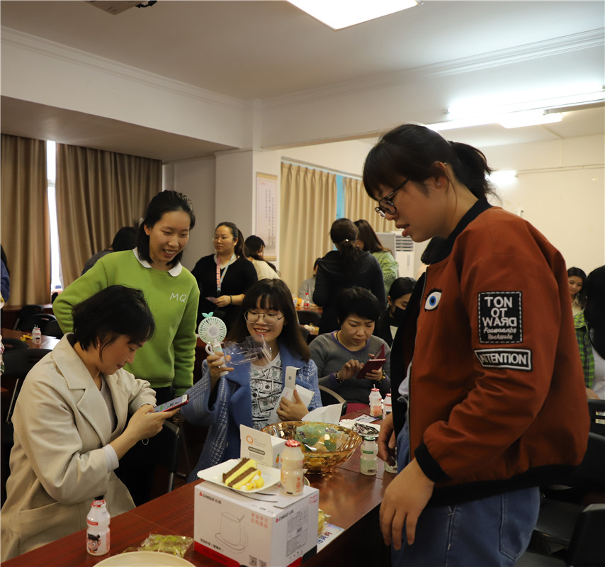 ▲黨委宣傳委員、工會主席、副總經(jīng)理、副校長王麗為壽星送禮物