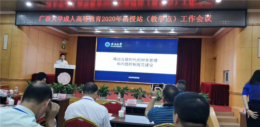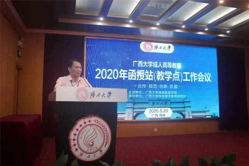5月20日,廣西大學(xué)成人高等教育2020年函授站(教學(xué)點)工作會議在桂林召開,廣西大學(xué)??校黨委常委、總會計師寧旭初、繼續(xù)教育學(xué)院??院長蘇兆成、副院長??陳海以及??各函授站(點)負(fù)責(zé)人和老師??參加了會議。我函授站站長蔣華、副站長王志參加了會議。