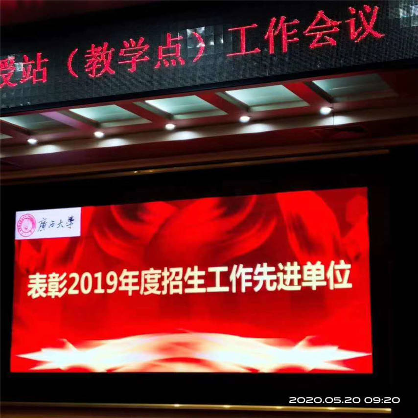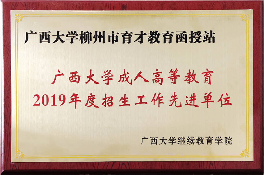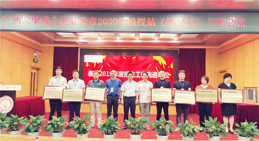 會上,學(xué)校領(lǐng)導(dǎo)為獲得表彰的函授站(教學(xué)點)頒發(fā)“招生工作先進(jìn)單位”榮譽(yù)牌匾。我函授站是經(jīng)教育廳批準(zhǔn)備案的廣西大學(xué)校外函授站,因工作出色,再獲殊榮,連續(xù)第五年榮獲廣西大學(xué)成人高等教育“招生工作先進(jìn)單位”。