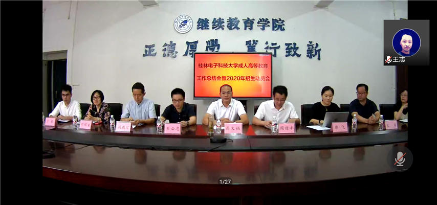 5月29日上午,桂林電子科技大學成人高等教育2019年工作總結(jié)暨2020年招生動員會通過視頻召開,繼續(xù)教育學院院長高文強、副院長周建豐、韋必忠以及各科室領(lǐng)導(dǎo)老師和各站點分會場老師參加了會議,我函授站站長蔣華、副站長王志等領(lǐng)導(dǎo)參加了視頻會議。