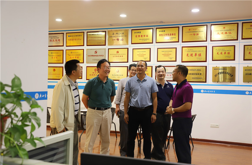 6月5日,桂林電子科技大學(xué)校黨委常委、總會計(jì)師曹輝景、副校長李文軍、繼續(xù)教育學(xué)院院長高文強(qiáng)、副院長周建豐、院辦主任程華一行蒞臨育才柳州本部檢查指導(dǎo)。集團(tuán)聯(lián)合黨委書記、董事長蔣華、總校校長梁國坤等黨政班子領(lǐng)導(dǎo)陪同檢查。