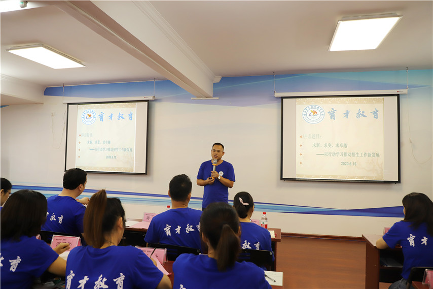 會議第六項(xiàng)議程,集團(tuán)聯(lián)合黨委書記、董事長蔣華以《求新、求變、求卓越——以行動學(xué)習(xí)推動招生工作新發(fā)展》為題對集團(tuán)2020年招生工作進(jìn)行動員及工作部署,希望各運(yùn)營部、學(xué)習(xí)中心規(guī)范招生、教學(xué)、培訓(xùn)管理等辦學(xué)環(huán)節(jié),在集團(tuán)“12345”的戰(zhàn)略發(fā)展規(guī)劃下,以黨建引領(lǐng),推動繼續(xù)教育事業(yè)發(fā)展。以行動學(xué)習(xí)新實(shí)踐、繼續(xù)教育新平臺、終身學(xué)習(xí)新育才(三習(xí)三新)推動育才各項(xiàng)工作新發(fā)展。