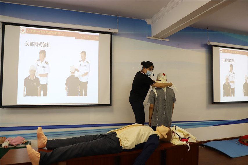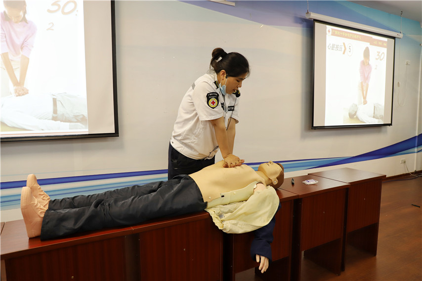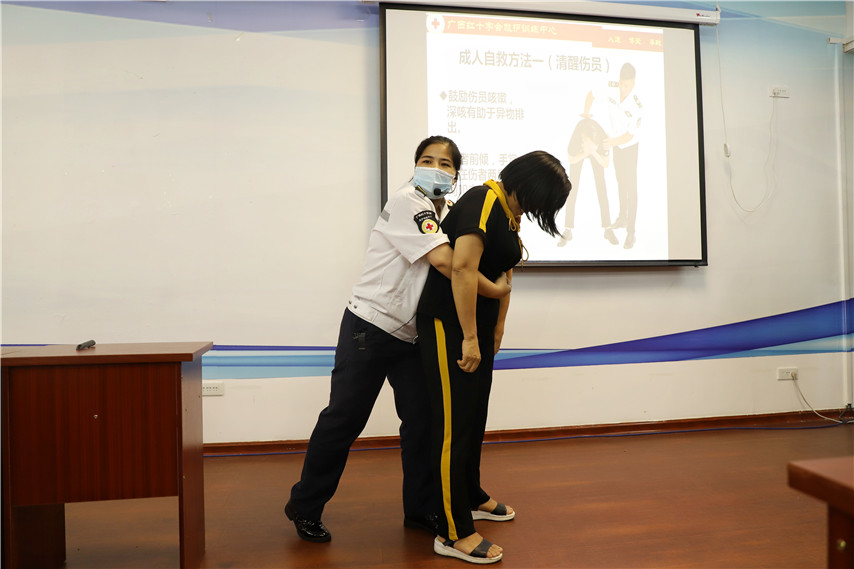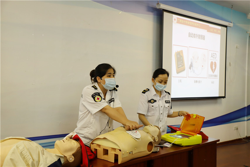 此次培訓(xùn),由廣西紅十字會救護(hù)訓(xùn)練中心授課。培訓(xùn)課以理論講授、操作示范、案例分析的形式,救護(hù)講師從專業(yè)的角度,向?qū)W員們詳細(xì)介紹了紅十字運(yùn)動基本知識,人道救護(hù)理念。從現(xiàn)場救護(hù)的處理程序、徒手心肺復(fù)蘇技術(shù)、創(chuàng)傷救護(hù)的方法與步驟、骨折處理、氣道異物梗阻的緊急救護(hù)等方面進(jìn)行講解并結(jié)合操作示范,重點介紹了徒手心肺復(fù)蘇、AED的操作方法,同時分步講解了每個步驟及操作中應(yīng)要注意的事項,學(xué)員們也親身體驗了心肺復(fù)蘇、傷口包扎操作步驟、氣道異物梗阻處理方法。