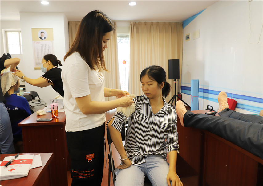 ▲學(xué)員練習(xí)傷口包扎方法