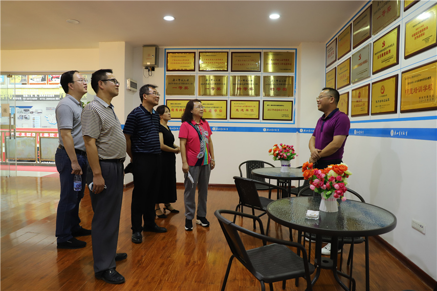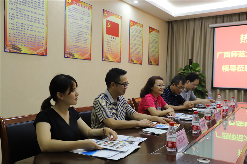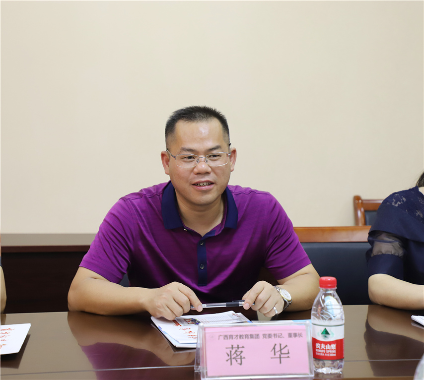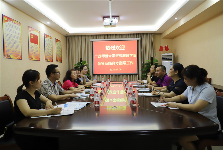 7月8日,廣西師范大學(xué)繼續(xù)教育學(xué)院院長、博士生導(dǎo)師劉玉紅教授、副院長何創(chuàng)雄、謝俊峰、學(xué)歷部主任蘇華一行5人蒞臨集團(tuán)柳州本部檢查指導(dǎo)工作,集團(tuán)黨委書記、董事長蔣華、黨委委員、副校長李彩梅、蔣亮、柳州運(yùn)營部部長韋彥清、副部長莫新紅參加了座談會。