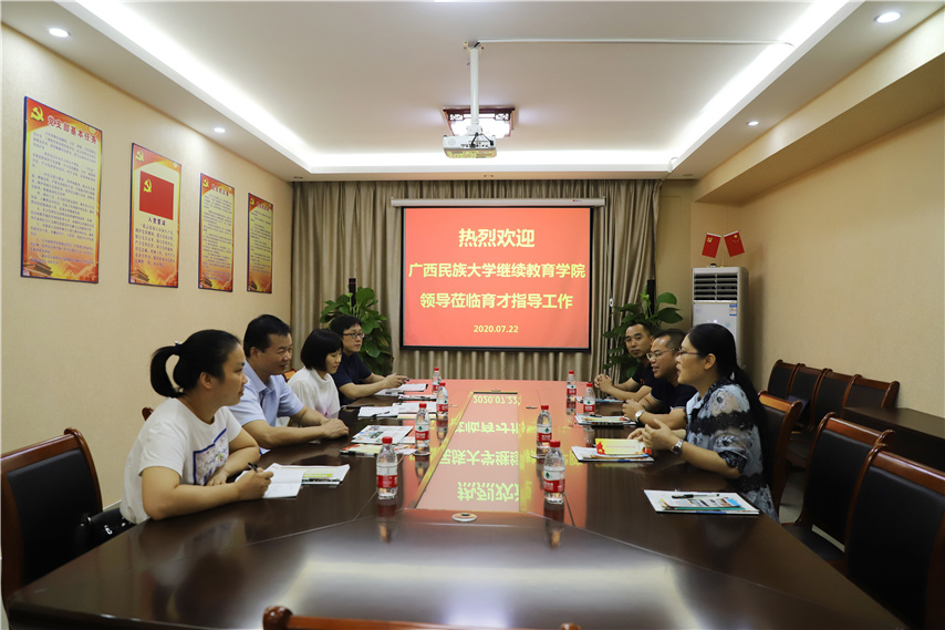 7月22日,廣西民族大學(xué)繼續(xù)教育學(xué)院院長覃志和、副院長唐曉華一行4人蒞臨集團(tuán)柳州本部指導(dǎo)2020年成高招生工作。