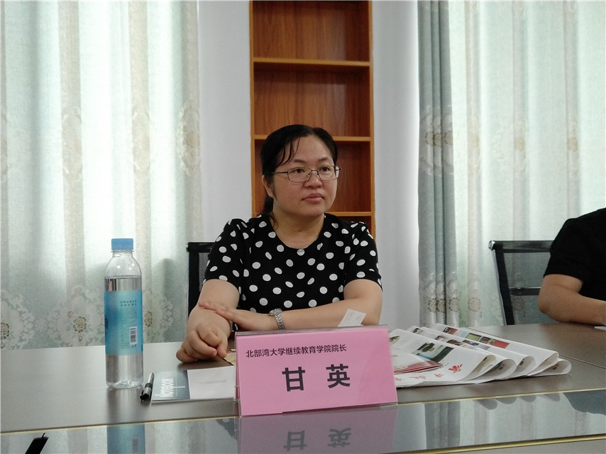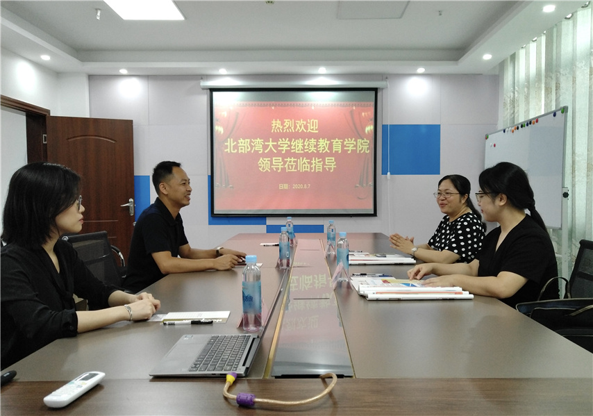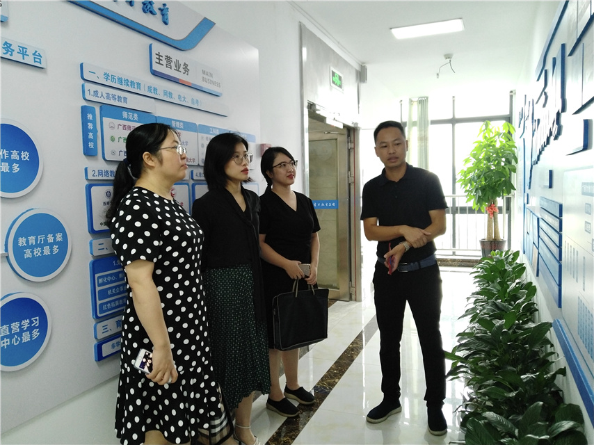 8月7日,北部灣大學繼續(xù)教育學院院長甘英一行2人蒞臨集團南寧總部考察指導,集團黨委副書記、副總經理、副校長王志、招生發(fā)展規(guī)劃部部長劉婉麗參加了座談會。