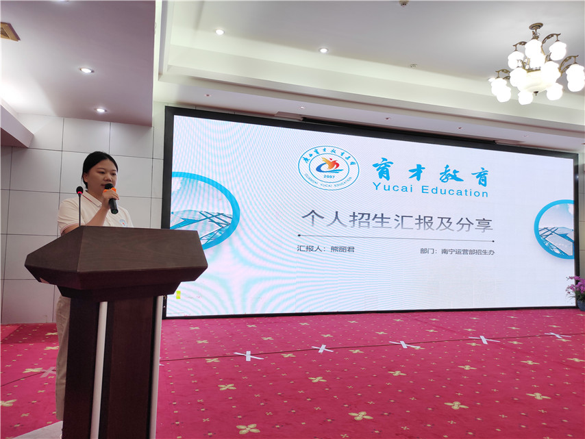▲謝愛華副部長作柳州運(yùn)營部招生工作總結(jié)