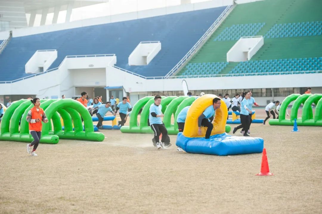 此次運動會共設(shè)有“眾星捧月”、“運轉(zhuǎn)乾坤”、“龜兔賽跑”、“穿越障礙”等四個趣味橫生的比賽項目,四個項目采用計時進行核算成績,累計用時越少隊伍則成績越好。