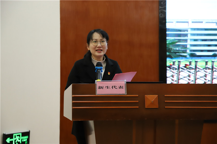 2019級(jí)工程造價(jià)本科專(zhuān)業(yè)楊怡冰代表老生發(fā)言,他代表老生向來(lái)自四面八方的新同學(xué)表示熱烈的歡迎,希望全體新生要不忘初心,努力學(xué)習(xí),不斷地充實(shí)和提高自己;要修身立德、完善自我,盡快實(shí)現(xiàn)學(xué)習(xí)、思維、處事等方面的轉(zhuǎn)變;與學(xué)校共同成長(zhǎng),回報(bào)母校。