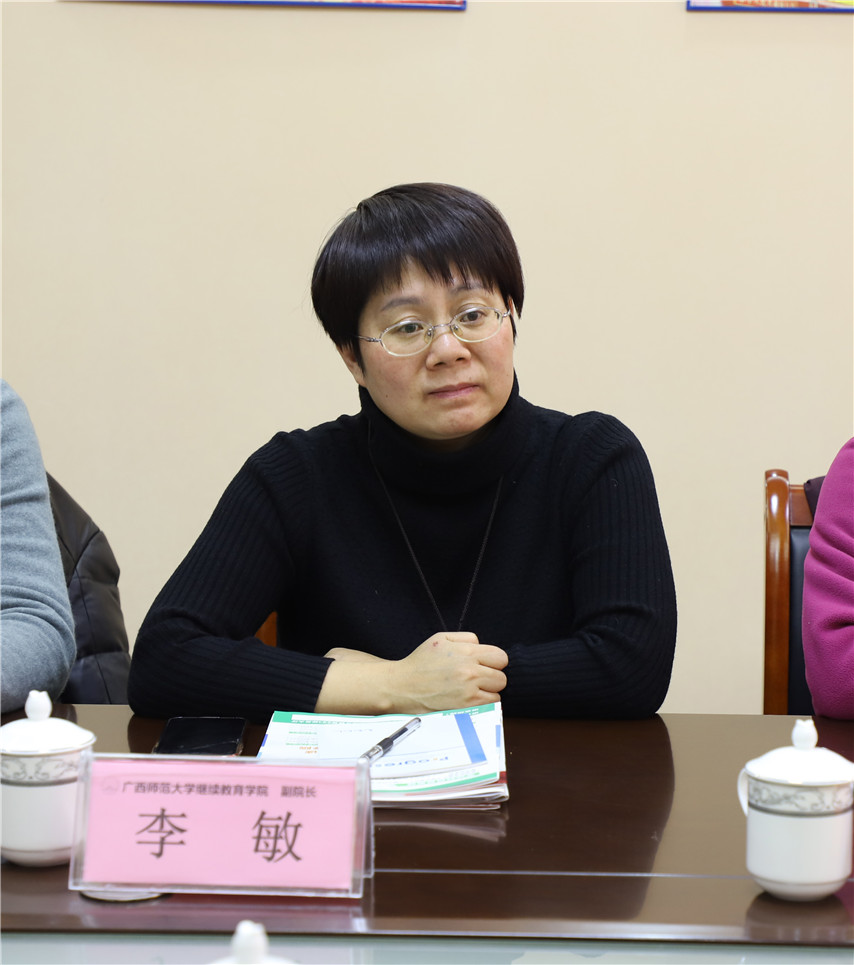 ▲廣西師范大學(xué)繼續(xù)教育學(xué)院副院長(zhǎng)李敏座談交流