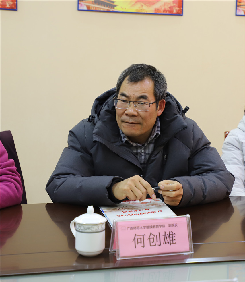 ▲廣西師范大學(xué)繼續(xù)教育學(xué)院副院長(zhǎng)何創(chuàng)雄座談交流