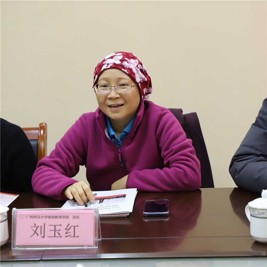 ▲廣西師范大學(xué)繼續(xù)教育學(xué)院院長(zhǎng)、博士生導(dǎo)師劉玉紅教授座談交流