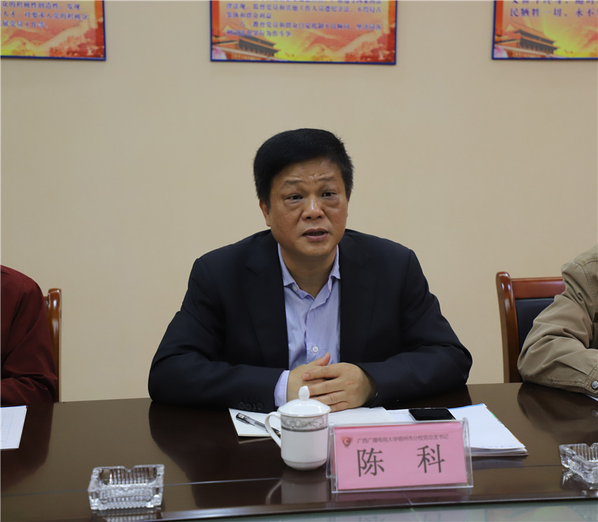 ▲廣西廣播電視大學梧州分校黨總支書記陳科座談交流