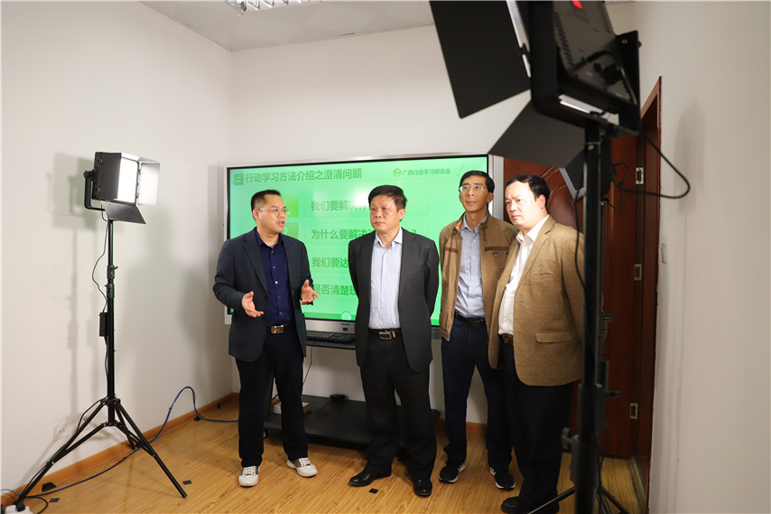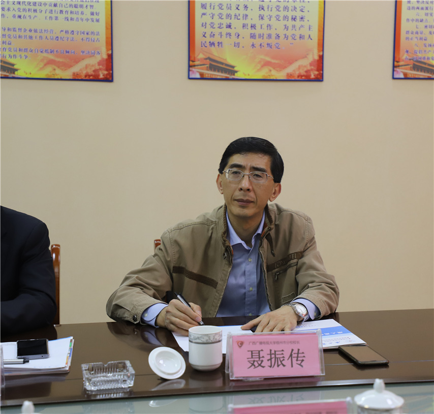▲廣西廣播電視大學梧州分校校長聶振傳座談交流