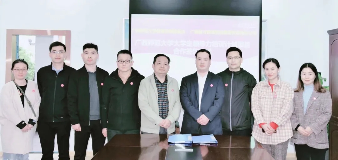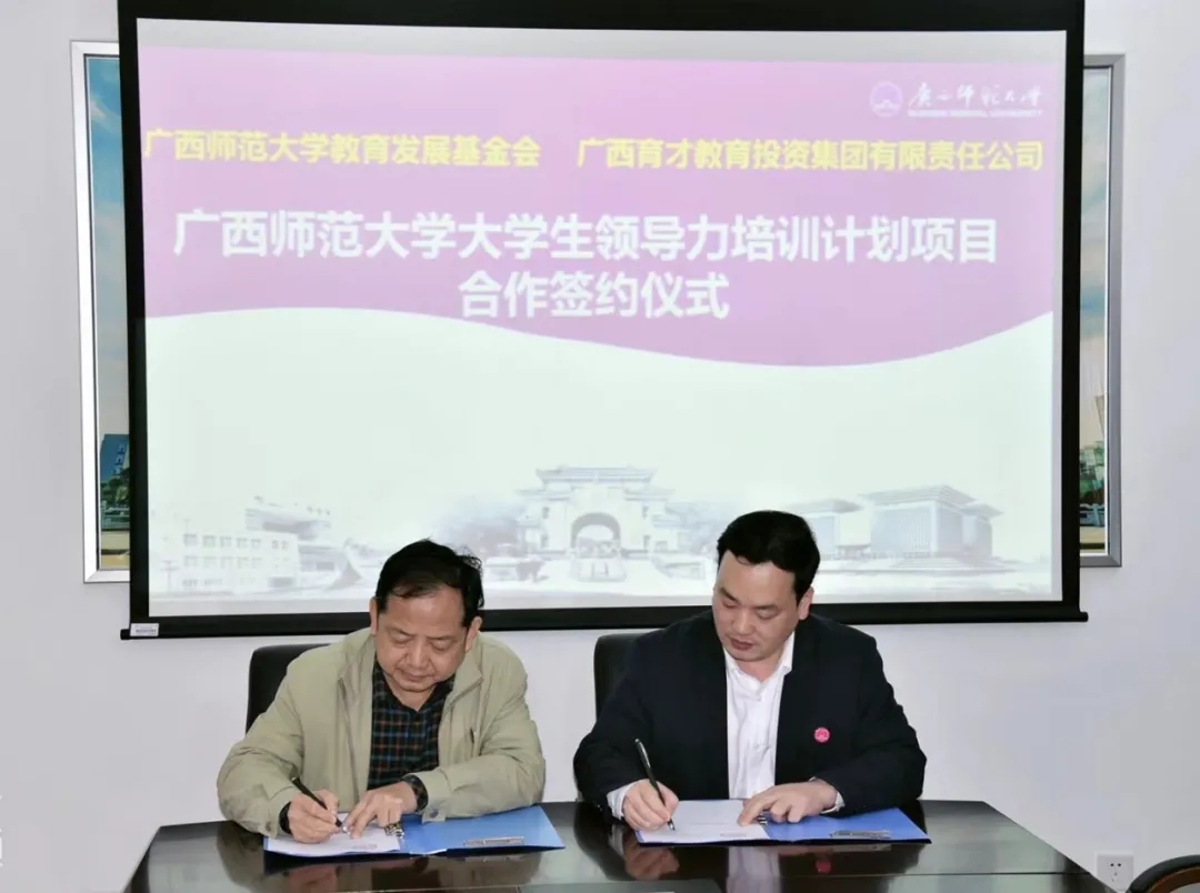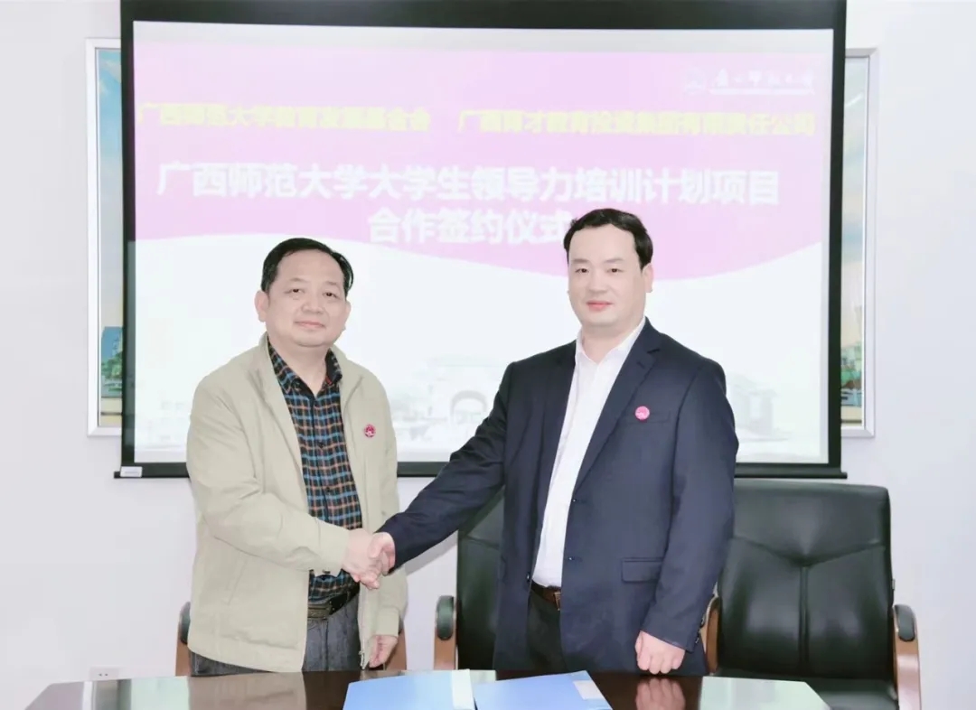 4月19日下午,廣西師范大學教育發(fā)展基金會與集團在廣西師范大學育才校區(qū)舉行了“廣西師范大學大學生領(lǐng)導力培訓計劃項目”合作簽約儀式。廣西師范大學校友工作辦公室主任、教育發(fā)展基金會管理辦公室主任、教育發(fā)展基金會理事長何小明與集團總校校長梁國坤代表雙方進行了簽約。