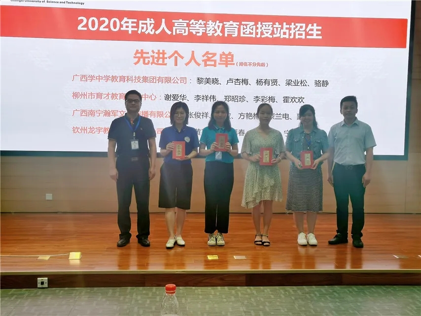 因工作出色,我函授站榮獲廣西科技大學2020年度成人高等教育招生工作“特等獎”,李彩梅、謝愛華、鄭昭珍、李祥偉、霍歡歡榮獲招生工作“先進個人”稱號。函授站副站長王志在會上作了招生與管理工作經(jīng)驗分享。